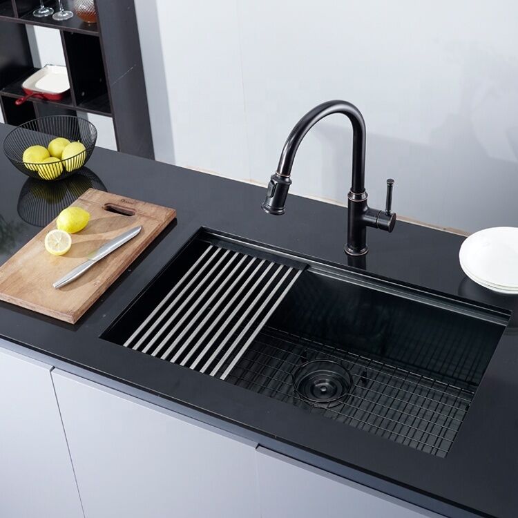 Gun Metal Single Bowl Kitchen Sink Black Stainless Steel Kitchen Sink Undermount Workstation Sink