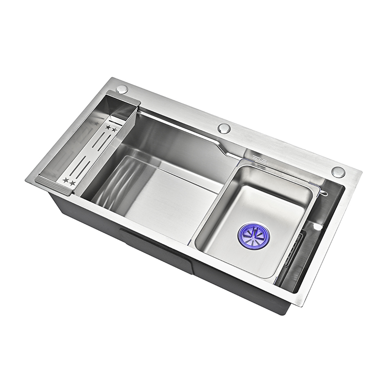 High Quality Stainless Steel Handmade Kitchen Sink Modern Design Single Bowl with Drainer Simple Style Counter Installation