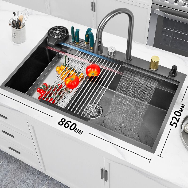 Kitchen Sink Multifunctional Waterfall Integrated Sink with Drain Board for Undermount Kitchen