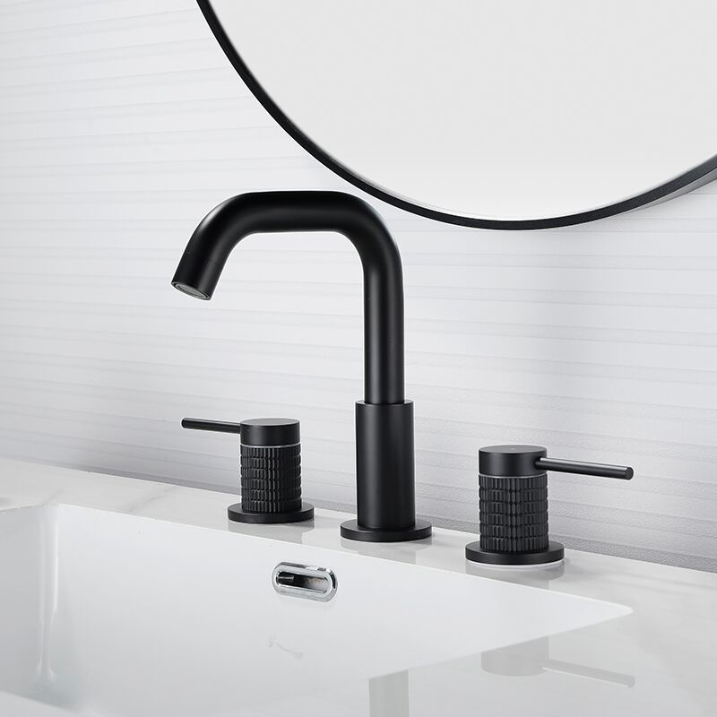 Matte Black Basin Mixer Faucet Deck Mounted Brass Ceramic Value Wash Basin Faucet Rotating 3 Hoes Taps for Bathroom