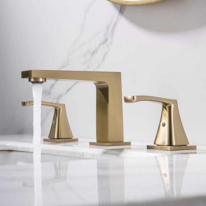 Modern Basin Mixer Faucet Deck Mounted Dual Handle Vanity Faucet Stainless Steel Brushed Gold Bathroom Sink Faucet