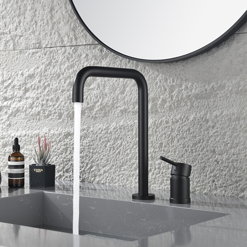 Modern Bathroom Basin Mixer Faucet Deck Mounted Matte Black Vanity Faucet Single Handle Brass Wash Basin Faucet