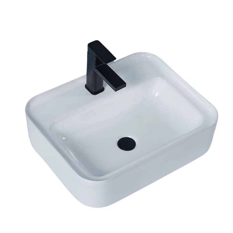 Modern White Rectangle Easy Clean Ceramic Countertop Basin Single Hole Faucet Cheap Wholesale Sink for Hotels