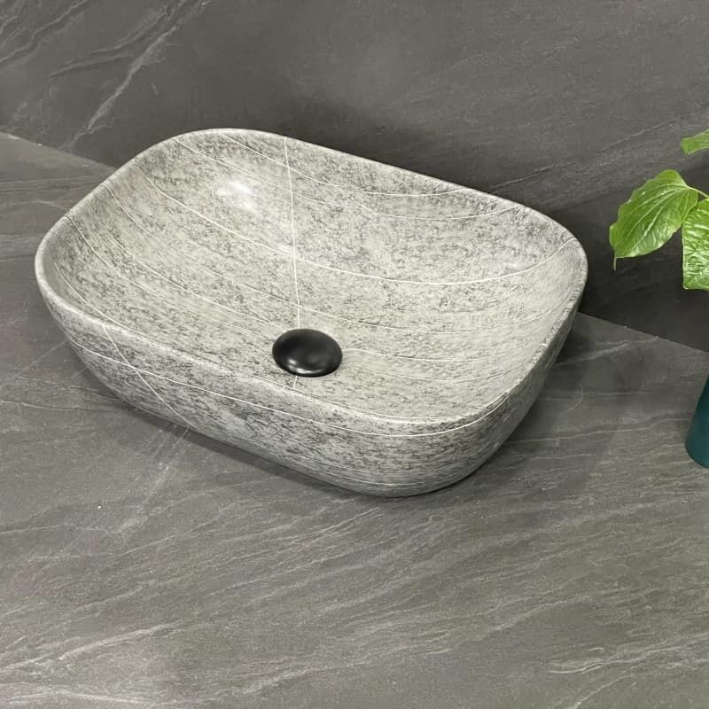 OEM Bathroom Marble Water Transfer Curved Pattern Surface Ceramic Wash Basin Sink for Villa Apartment Ceramic Basin Bath Sink