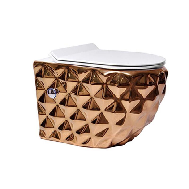 Tandas Bilik Mandi Peralatan Sanitari Seramik Rekaan Baharu Tandas Mewah Warna Rose Gold Washdown Tanpa Bingkai Dinding Digantung