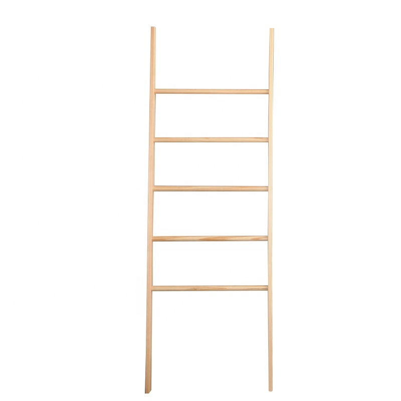 Wholesale High Quality 5 Layers Clothes Hanger Wood Ladder Towel Shelf Living Room Storage Towel Ladder