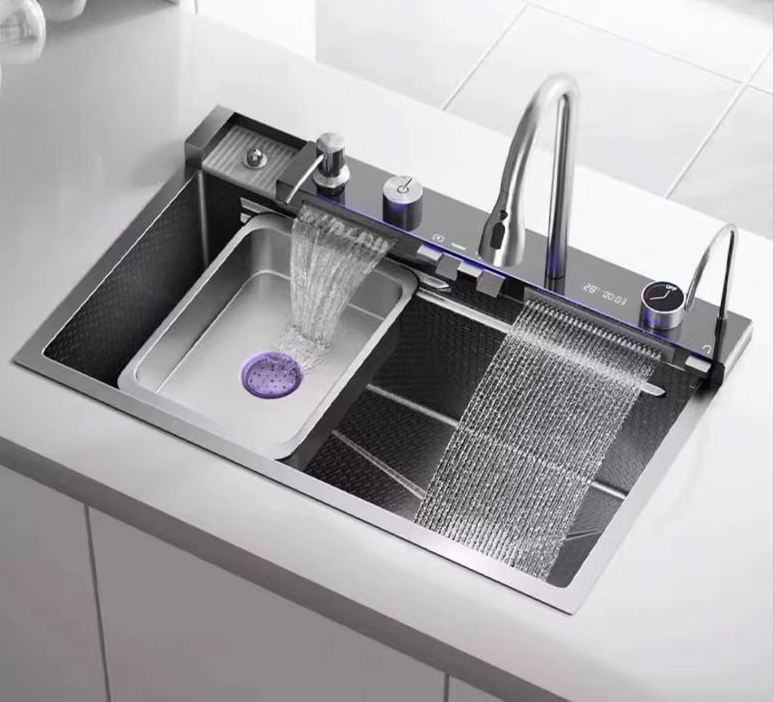 New Model Smart Kitchen Sink Nano Stainless Steel Handmade Kitchen Sink with Double Rainfall and Digital Display