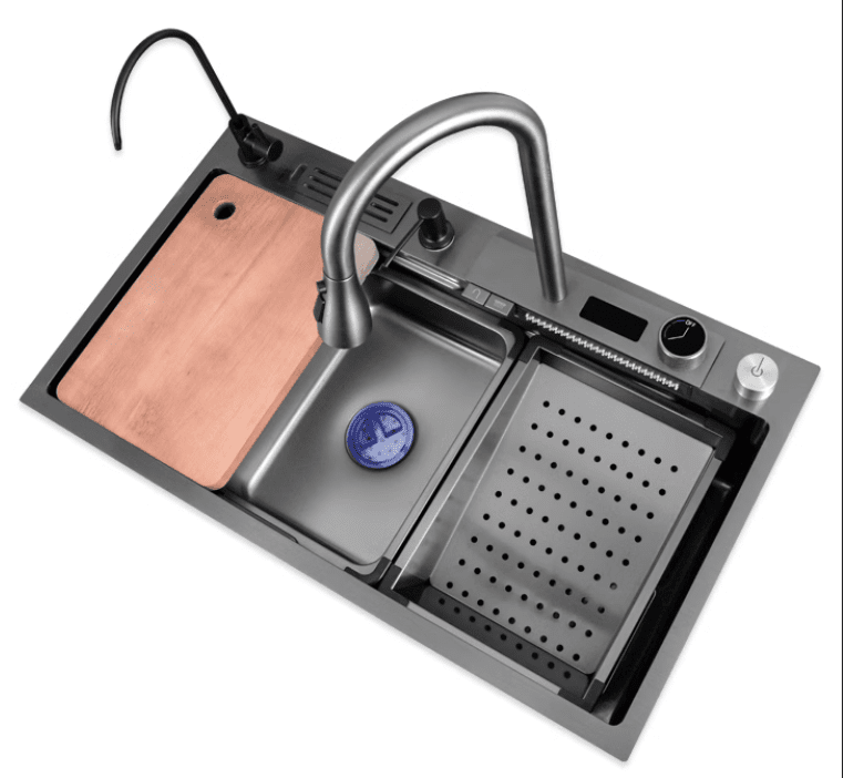 OEM Light Grey Stainless Steel Multi-function Large Handmade Steped Kitchen Sink