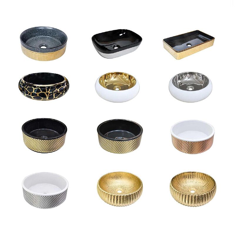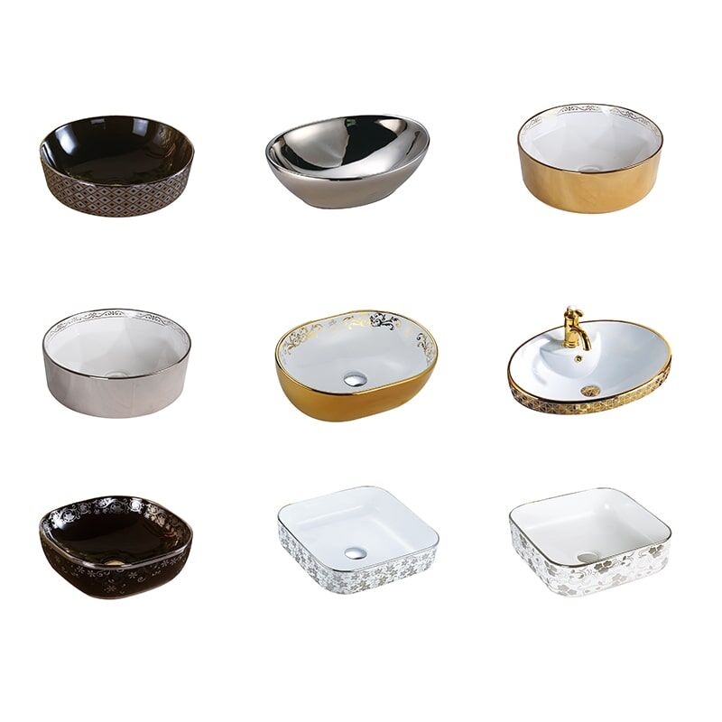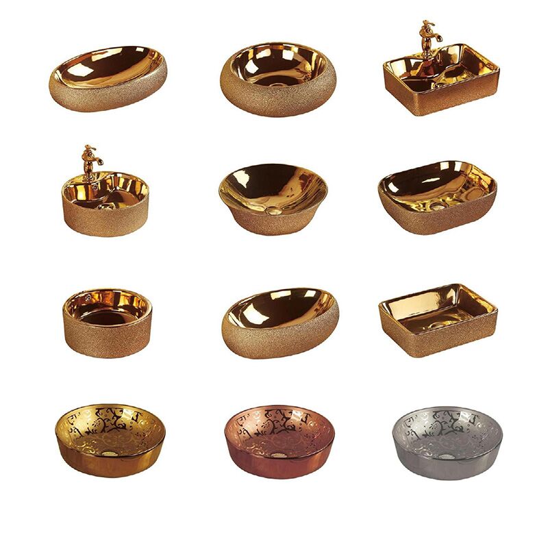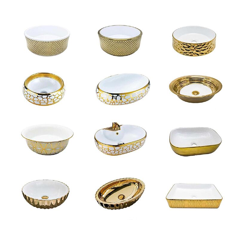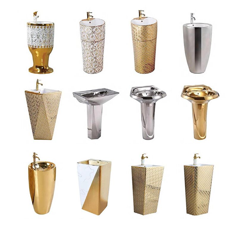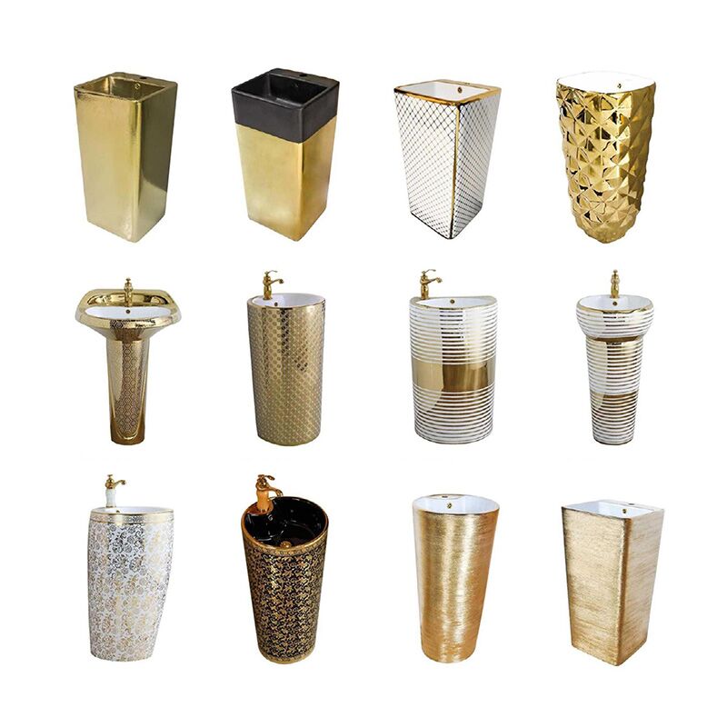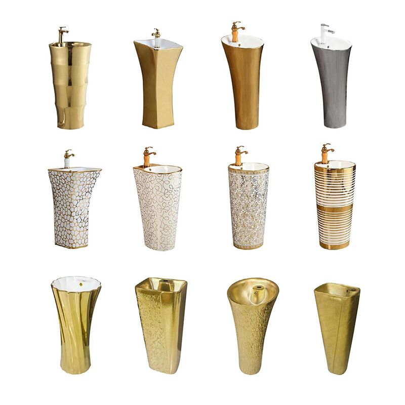 Bacia Direto da Fábrica Excelente Preço Hotel de Luxo Ouro Lavatório Autônomo Banheiro Bacia com Pedestal de Cerâmica