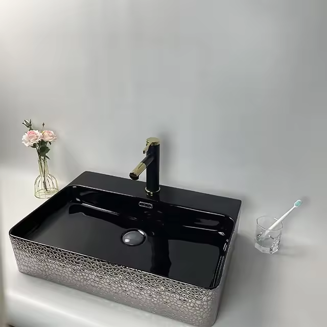 Bathroom Rectangular Basin Ceramic Large Electroplating Silver Black Pattern Above Counter Sinks