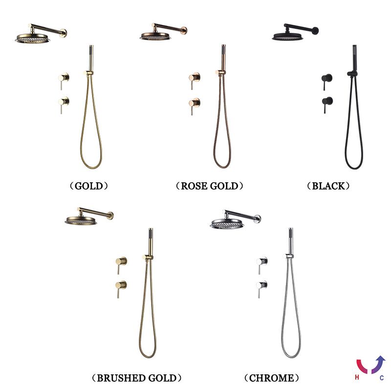 Circular Concealed Wall-mounted Shower Head Hidden Brushed Gold Shower Set Bathroom