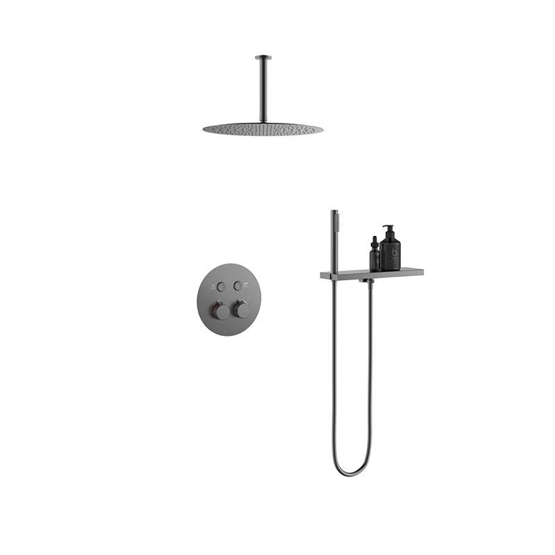 Top Spray Temperatura Constante Pistola de Banheiro Conjunto de Chuveiro de Latão Cinza Montado na Parede Sistemas de Chuveiro de Chuva Ocultos