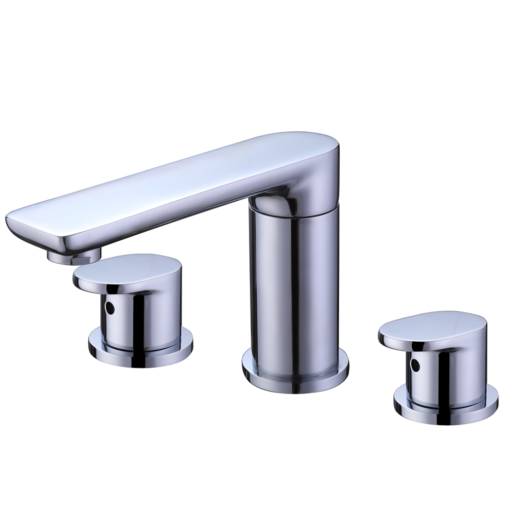 Contemporary Chrome Finish Brass Basin Mixer 3 Holes 2 Handles Bathroom Tap Deck Mounted Wash Basin Faucet