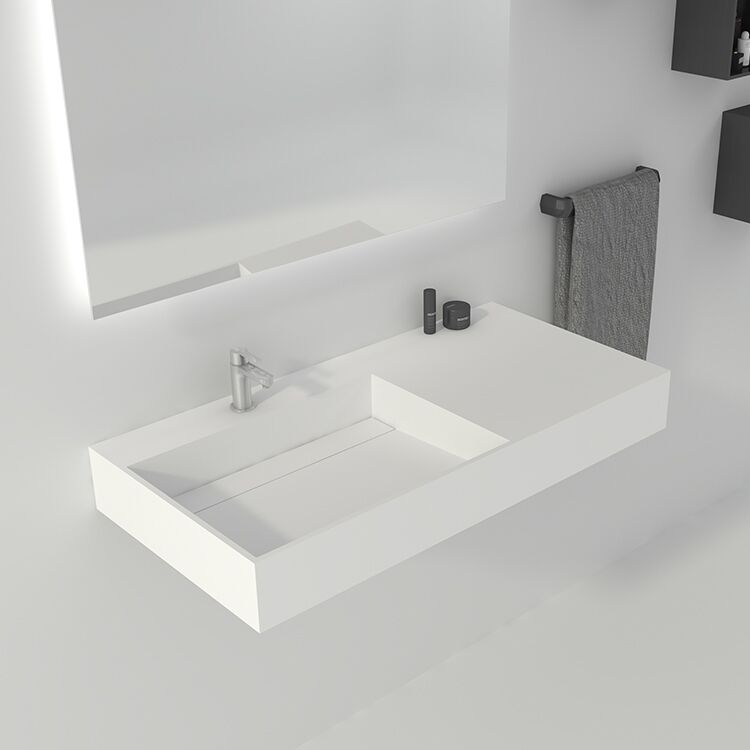 Discount Price 5 Years Quality Warranty Rectangular Wall Hung Wash Basin Solid Surface Acrylic Resin Marble Stone Bathroom Sink