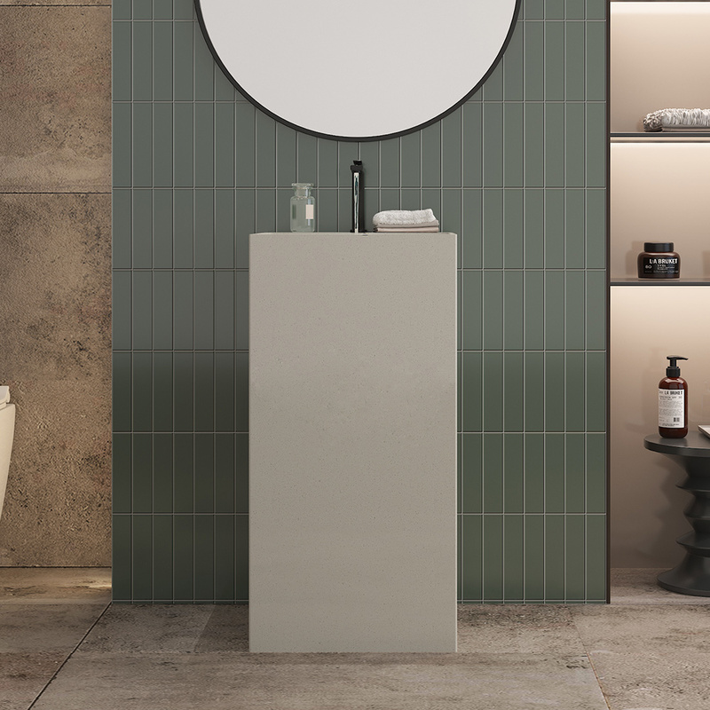 European Freestanding Square Solid Surface Bathroom Cement Pedestal Hand Wash Basin Stone Concrete Pedestal Sink