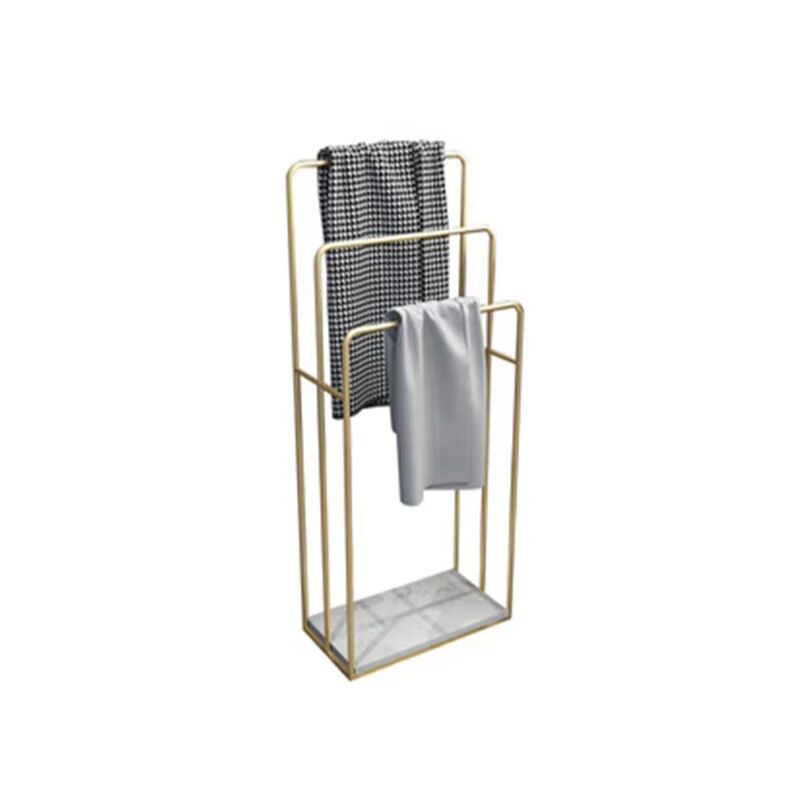 Floor Standing Towel Rack With Marble Base Gold 3 Pipe Towel Rack