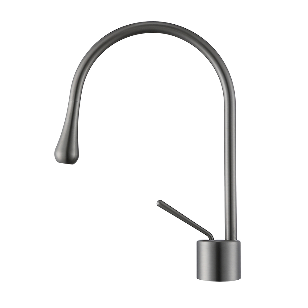 Gun Metal Finished Brass Basin Faucet Water Drop Shape Thermostatic Deck Mounted Hand Wash Bathroom Mixer Taps
