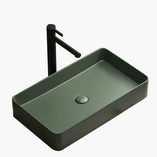 Hot Sale Sanitary Ware square Rectangle Lavabo Ceramic Hand Wash Basin Bathroom Cabinet Counter Top Vessel Sink with Matte Black