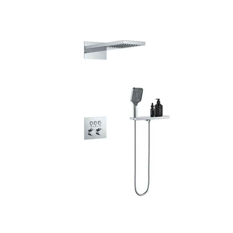 Bathroom Rainfall Waterfall LED Thermostatic Shower Faucet with Shower Body Jet and Music Function Shower Head
