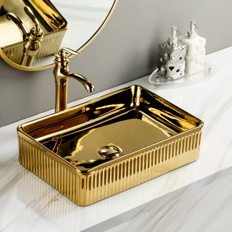 Luxury Hotel Ceramic Bathroom Wash Basin Sink Electroplated Countertop Gold Silver Basins