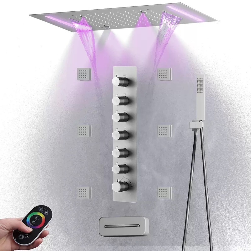 Luxury Thermostatic Shower Set LED Shower Smart Black Shower Set