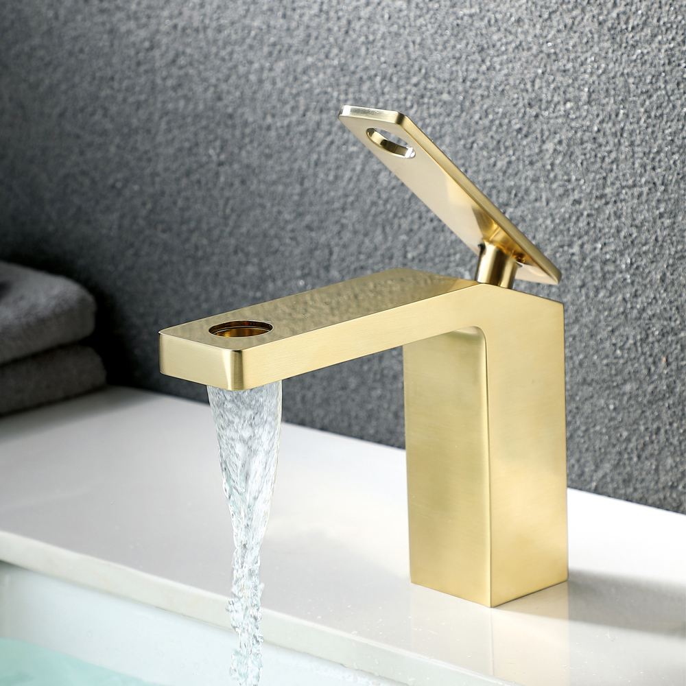 Modern Single Hole Deck Mounted Solid Brass Basin Mixer Tap Brush Golden Finish Basin Faucet