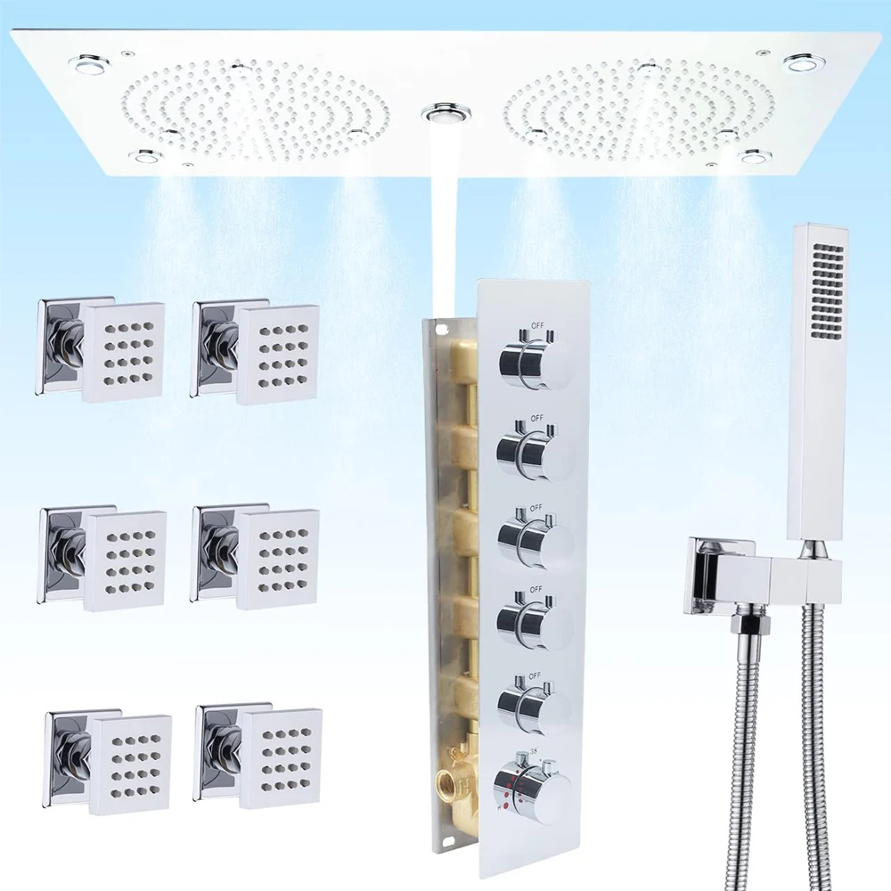 New Shower Head Thermostatic Ceiling Rain Shower System Set