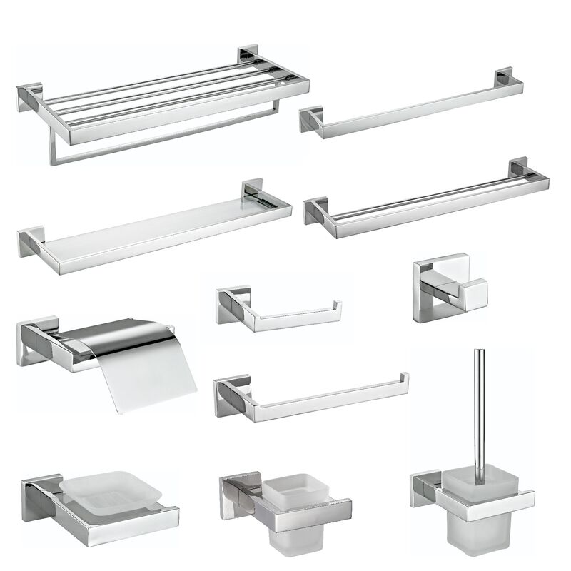 Polished Mirror Square Bathroom Hardware Shower Room Accessory Hotel Home Luxury Bath Toilet Fittings Set Towel Rack Bar Metal