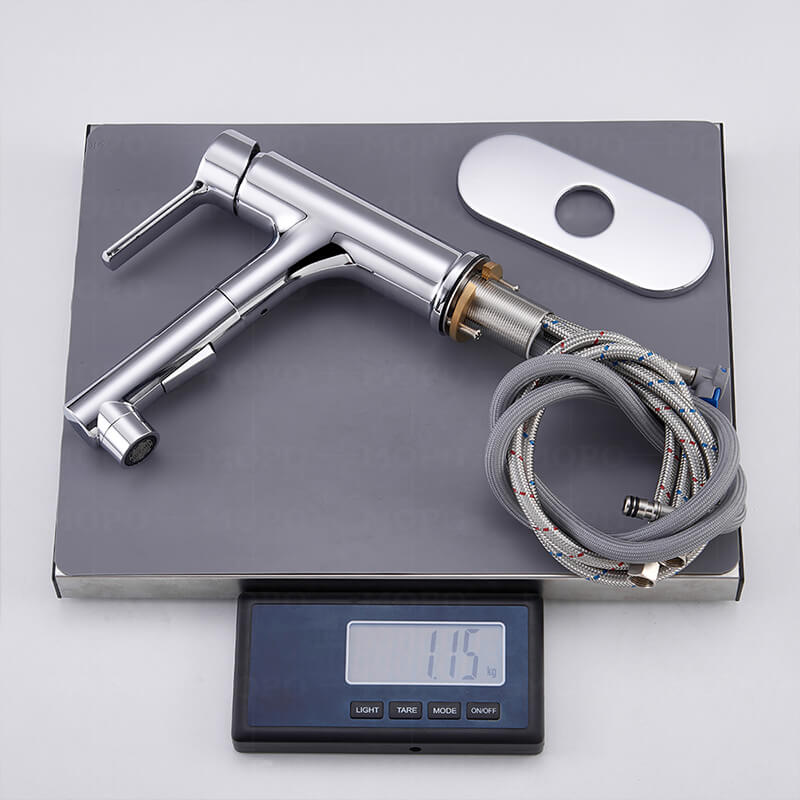 360°Rotating Pull Out Sprayer: The pull-out hose of torneiras de banheiro for sink 1 hole is polyester braided up to 23.6 inches long. The range of use can be extended beyond the sink without restriction for greater flexibility and convenience. The unique design of 360-degree rotation is very suitable for various scenarios: washing hair in a basin, filling water in a bucket, bathing pets, etc. The flexible pull-out bathroom faucet also makes it easy to clean all parts of the sink.