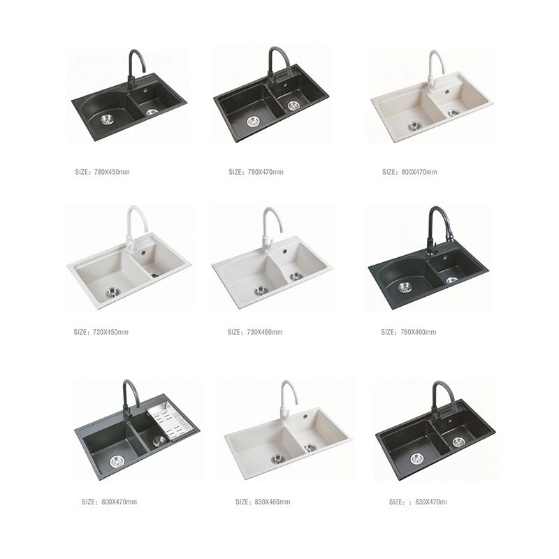 Pia de cozinha moderna de alta qualidade com tigela dupla em granito composto de quartzo cinza e embaixo da bancada