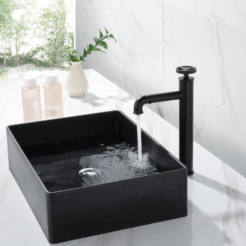 Single Hole Wash Basin Tall Faucet Matte Black Industrial Brass Cold Hot Sink Water Tap Mixer Bathroom Basin Faucet