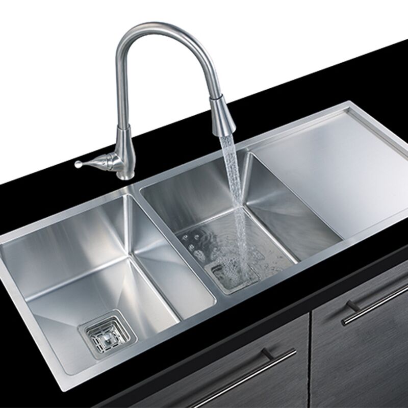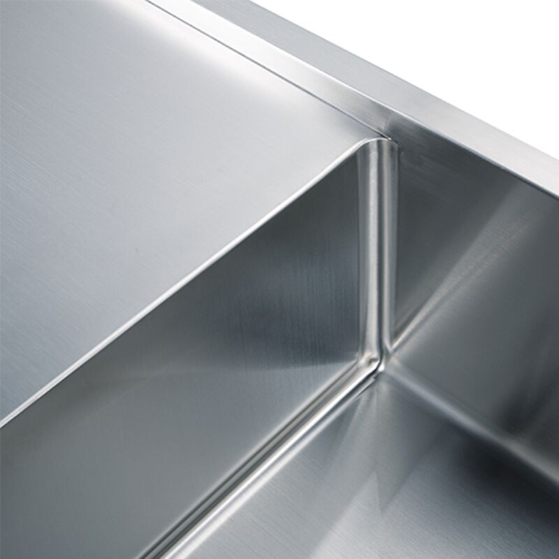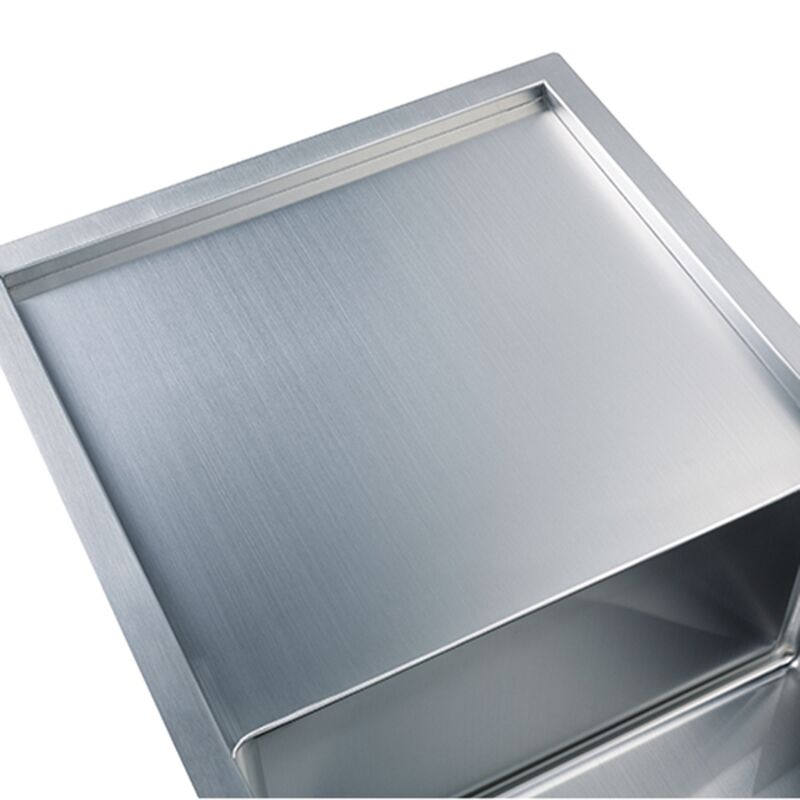 Os cantos arredondados do Radius R10 têm uma ótima aparência e são fáceis de limpar. Acabamento escovado de grau comercial resistente a amolgadelas e arranhões, fácil de limpar, resiliente e duradouro. Pia da cozinha herda o melhor aspecto deste material de revestimento. A proteção UV impedirá que você afundar da oxidação e do desbotamento, evita que a ferrugem flutuante afundar no uso diário, quando se trata de limpeza, a natureza hidrofóbica do material criará uma força de elevação hidrodinâmica para repelir as moléculas de água. O líquido flui como se estivesse na superfície da folha de lótus, fazendo com que o afundar mais fácil de limpar.