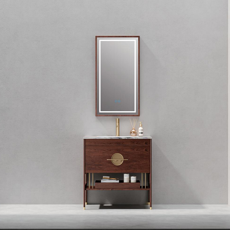 Solid Wood Floor Standing Vanity Modern Water-Resistant LED Bath Mirror Cabinet
