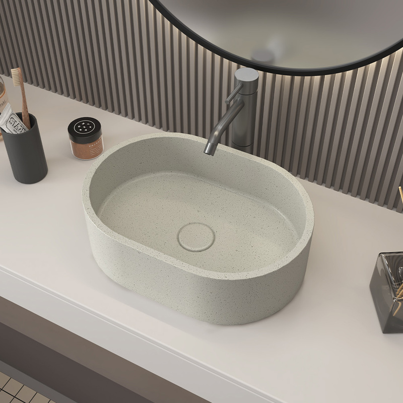 Rectangular Anti-scratch Counter-top Round Shape Hotel Cement Basin Design Hand Wash Cabinet Concrete Bathroom Washbasin