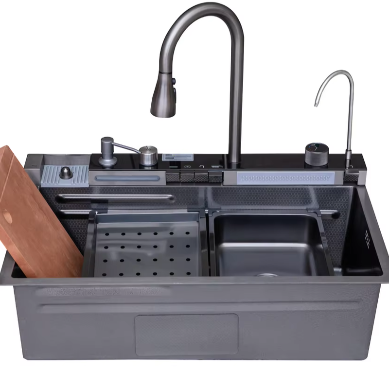 Stainless Steel Nano Black Handmade Smart Waterfall Multifunction Kitchen Sink Digital Display Sink Kitchen