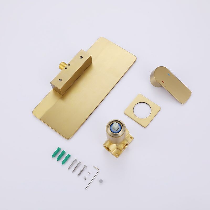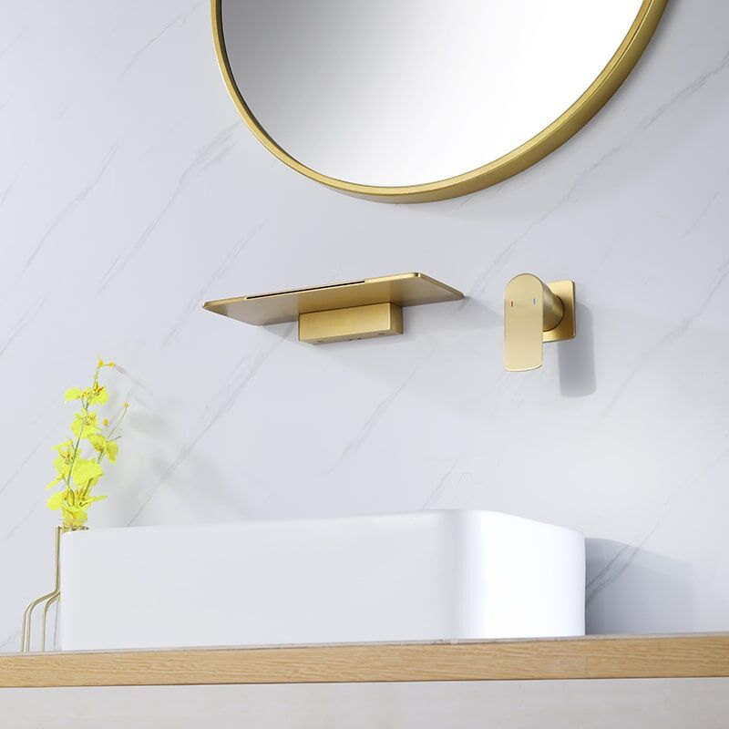 Wholesale Brush Golden Single Handle Square Brass Wall Mounted Storage Rack Waterfall Bathroom Faucet