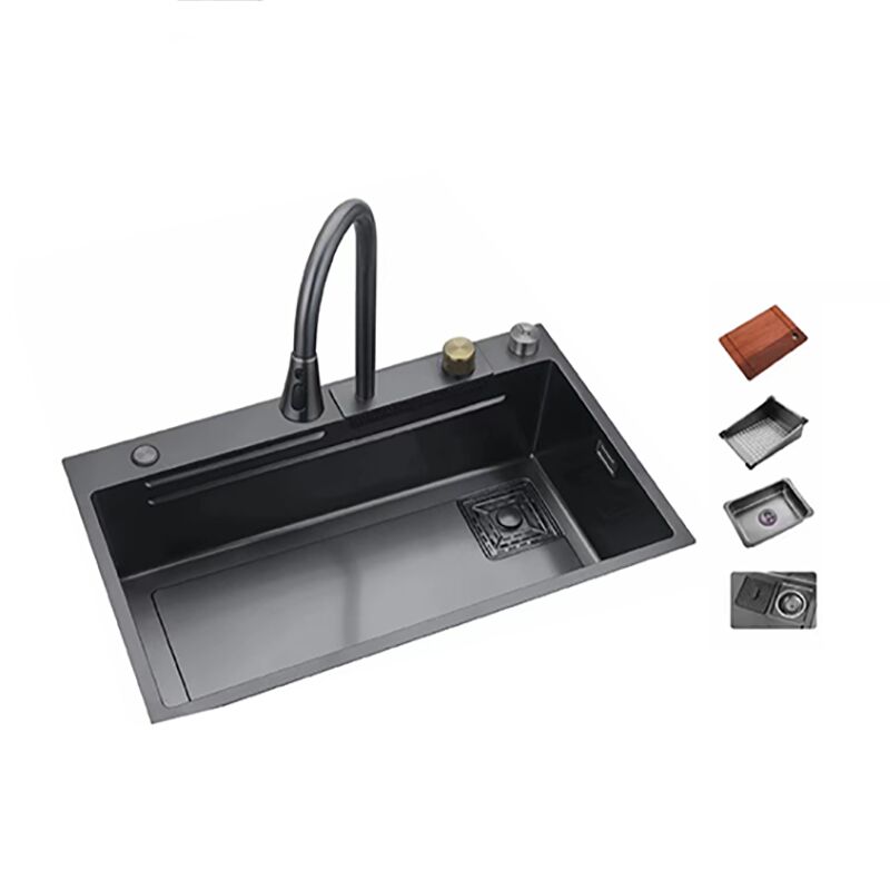 Wholesale 304 Stainless Steel Kitchen Sink Faucet Modern Black Waterfall Rainfall Single Bowl Kitchen Sink Set
