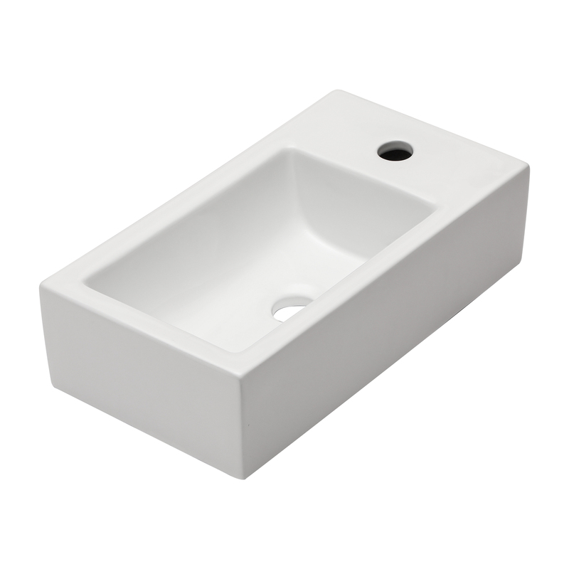 White Ceramic Wall-Mount Bathroom Sink Wall-Hung Sink Rectangular Small Wash Basin of Right Left Faucet Holes